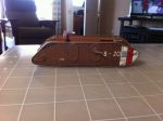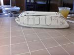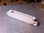 Side-frame assembly pix. 0653 shows the stiffeners (ribs) attached to one side. 0654 shows the two sides with ribs between. I considered spacing the ribs so as to miss the doors, in case someone wanted to open the doors to show the inside. This might be possible, but it would complicate the rib layout. Anyone competent to model the interior could certainly re-arrange the ribs to suit. Comments, anyone?