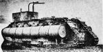 Just had a look at the video of the amphibious trial (on the Landships II article). There are no obvious markings on the machine, but there's a third flotation tank in front of the cab, possibly some form of controls or voice pipe inside the "bridge" on top of the cab, and an inexplicable vertical (metal?) sheet mounted on the front right track horn. I've also read somewhere that wooden paddles (hinged, I think) were added to the tracks to provide propulsion in the water.
