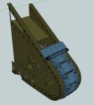 Re-reading Helen's post, perhaps the single wide link is for robustness in a model? A good idea, though if I may, I suggest making a groove in the centre to allow flanged rollers to be used - otherwise lateral forces may make the tracks come off during turns or on side-slopes. In theory, I think the tracks were supposed to be kept in place also by a side rail inside the armour plate (an angle iron/L-beam running along the inside bottom edge of the side armour, next to the rollers and track links), to catch the side flanges of the inner part of the track link (the "rail" of the "railway track" that the rollers rode on) and prevent it from sagging downwards when unsupported crossing a trench. In practice, it doesn't always seem to have worked.