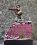 Here's my rendition of Tommy's War's 54mm Pvt of the 1st Lincolns at Mons. The groundwork and wall are scratch from sculpey. Note the spent cartridges on the ground (sliced plastic dowell). Painted in artists' oils. The wall wasn't finsihed in the photos as the mortar has not been painted light grey.