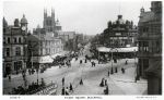 In the last section we can see trams moving in the background, and what I think is the entrance to North Pier, which is just across the tram lines from Talbot Square. Again, not an exact match.
