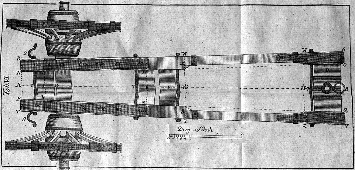 Re: my other question about the wheel size, quoting TinCanPole again: "For size, you would want the largest diameter reasonable, in order to minimise rolling resistance, especially over rutted ground which could trap small wheels; large wheels mean greater weight, however, plus extra material and increased cost (...)" and weight. That's perfectly reasonable to me, I just wondered why 1300 mm was considered the best compromise. I think the reason lies in an additional factor: Men would have to pull these wheels very often, and the shoulder of a man of average height 100 years ago would be about 1300mm from the ground. That way, the wheel size would ensure the men could exert maximum force on the spoke near the felloe joint.