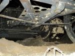 There may be some rounded triangular blocks at the bottom end of the springs, just like the ones at the top; there seems to be a bolt running sideways through each block and the pair of springs (pair in the sense of side-by-side, not in-front-and-behind) joined to it. I surmise that each triangular block would have a bolt running through it, connecting it to a pair of steel plates/lugs (on the front of the first beam of the tail unit) like the filling in a sandwich - the steel plates being the bread.
