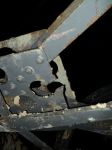 The triangular-ish plates to which the jack attaches can also be seen in that photo, just below the cylinder of the jack - which is obscuring the bolt running through at the top of the plates.