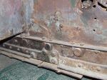 Andrew, look along the 'L' rail, well underneath the floor of the tank in that photo you just posted: you will see plenty of rust just above the rail, with a patch of intact faded green paint (at the same level as your "hull floor" tag). Look to the right of the faded-paint patch, onto the rusty plating which sits below the position of the sponson, above the track-contact patch; there is a mass of bolts hanging on the underside of the tank at this spot - look immediately below these bolts, I think you will see two of the holes (narrowed by perspective, so they look closer to slits) marked on the plans just below where the post-it is on your original photo. I think it is one of the 'twinned' holes plus the single hole to the left of them.