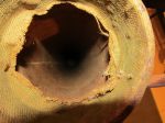 The inside looks like carboard wrapped in a sort of canvas with leather straps and end caps. It looks like it may have been green at one point, but now it's faded everywhere except under the cap. Any information would be awesome! Thanks guys!