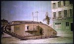 I found an Autochrome photo of a later MKIV, this I could guess the colour a little better as there are things we know the colour of in the picture. The stripes on the front horn are red and wight, sky blue as there are shadows, trees green, etc. It is still though a guessing game. More a feeling of what's right, nothing more. Good fun though. Intersting is that it looks greeny brown, but this appears to be dust, as it looks greenish where the muck has been cleaned away from the tanks symbol thingy.