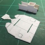 At last I managed to draw and colour all pieces and sort them into an A4 sheet. So today I began the definite model (or some sort of .. )