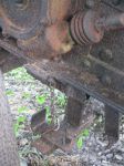 Mk 1 - thanks for the link to the axis forum - some interesting detail of Krupp carriages. This gun certainly has no trace of a traverse mechanism and the trunnions are fixed to the carriage which must have bucked when it was fired! The attached front view shows two brackets on the front cross piece of the carriage (- might have held a shield?), the brake action to the inner front rim of the wheels and a 'bracket' structure hanging down just behind the axle - don't know what that is!
