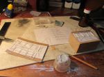 Ditto from here: the stocking's weave pattern is different. In fact yesterday I was making a stab at colouring a piece of tulle fabric -as TeeELL recently suggested- using a paint marker. It worked wonderfully! Thanks TeeEll! The pattern is correct, yet on my sample the weave is perhaps a bit too large for a 1/76 "chicken wire". On scale, a human fist can easily fit between each opening. I guess I'll have to raid another of my daughter's "Princess" costumes for a more suitable material. As a matter of fact, here's a few shots of my "bomb roof" construction process, jigs and patterns. On the background, you can see the "rejects" which are plentiful...