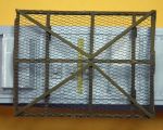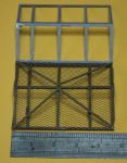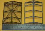 Best way of getting the legs right: drill hole through beam (at right angles to beam) cut 10mm rod and pass through each of the 4 holes, adjust each rod until the grenade cover is level along and across the tank roof. When happy that all is square and correctly spaced MEK the rods and, when dry, cut the excess from the outside, smooth, paint and apply netting. Once that is done paint and fix the diagonal bracing strips (thinnest section plasticard) again using PVA as it sticks well enough to the painted plastic.