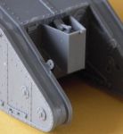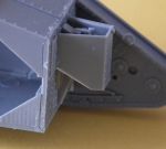 The shield is symmetrical and, to my eyes, the photo of a shield on a damaged tank suggests otherwise. It appears to me that the side of the shield adjacent to the door has less of an angle than that side which is attached right next to the ventilation louvre. I have thus offset the shield slightly, to the left. It further appears that the mounting support for the upper cross member of the tail springs is also offset with regard to the shield but central in respect of that cross member. I have replicated this feature.