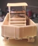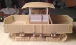 Well I have nearly finished construction on the 1/72nd Uberlandwagen. I added more details to the cab including: 2 reservoirs, foot pedals, and linkages. The details were copied from photos in my A7V references. I have also started on the roof. The roof kit supports were poorly made so I scratched some from Evergreen styrene strips. The roof looks really warped but it is not as bad in reality. Of course it is not attached at this point. I will add some strip brass to the supports to pull them straight when I glue on the roof. The side tarps will also be added last to avoid problems.