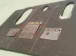 First I made six holes because of..symmetry with the upper plate, but since it looks to be wrong I filled three of them.