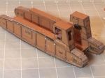 I haven't gotten to the rear face of the vehicle, except to size and locate the oval doors. The isometrics show a fan and box radiator on each side. The flat surface of the fan aligns with the vent in the rear face. I assumed the air was drawn in from the inside of the box. The arrangement of the piping between the engine and the radiators is pure supposition, guided by the way it was done in the MkIV.
