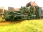 Thought you would like to see these.They were taken by Pete Wilson on hiw WDLR layoue.A 6ins Howitzer being laoded on to a modified F Class wagon.