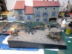 This is the GB-Modelli Obice 305/17 on DeStefano carriage and Tratrice Pavesi. This scene depicts the gun and tractor abandonend during the retreat of the Italian army in November 1917,in a village near Udine.Austrian troops are conversions of Hät,Emhar,Caesar miniatures and Airfix figures,the horse cart jadar models.Houses are made of plastic sheet and every thing else scratch.It's not finished yet,some touch ups with paint will be needed and I'm still not quite sure about positioning of the figures. GB-Modelli's kits are exraordinarily nice,crisp detail plus perfect fit ,a real fun build!I'll post more and better pics when it's done. Merry christmas to all of you!