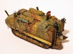 As I mentioned in a previous discussion, the kit lacks the undercarriage detail. The kit track does not go together very well due to a lack of any positive mating features. I replaced the applique armor on the kit that is too thick to be convincing. There is a lot of small detail that HB either doesn't show, or misunderstands. I updated mine to show the later configuration with the external fuel tanks and added left side door. The AEF figure with Chauchat is a conversion. The markings are either from the spares box or printed using plain white decal sheet (camel, oil drum markings)