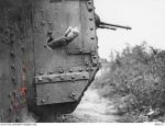 "A carrier pigeon being released from a port-hole in the side of a tank near Albert, 9 August 1918. It's a Mark V tank of the 10th Battalion, Tank Corps attached to the III Corps during the Battle of Amiens."