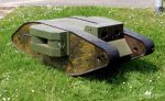 Connected with the Tudor-Hart scheme is a model in the collection at Bovington, said to be"nearly 2m long". This depicts a female tank with the earlier type of sponson. This is "decorated" in a manner similar to the Mk IV in the photograph, both on the outside and inside of the track frames, excluding the hull and sponsons. The pattern is applied vertically and horizontally, and the effect resembles a Bargello design upholstery. But then Tudor-hart did design textiles.