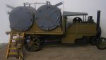 Fitted with 2 large steel drums, clothing contaminated with lice and other vermin placed inside and then low pressure steam introduced from the engine, this killed all the little unwanted creatures and eggs.