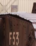 The tank is in the open, on a sloping plinth. Can't see enough of the buildings in the background to say exactly where. View of the rear shows tail wheel in place. Commentator explains damage sustained in action, and film shows rear right-hand side of vehicle and six irregularly shaped holes, forward of drive sprocket. The starboard sponson is Mk I female with Vickers guns, and the port is Mk I male - the door opens towards the hull - but with a short 6 pounder. One thing that slightly threw me is what looks like a bracket for an unditching beam rail, so I wondered if this was the same tank, but I can see that it's fitted on the Mk II, so I assume it is.