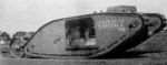 I think that the attached photo of 721 (C5) may be the one which Denis is referring to. This is the only photo which I have seen that suggests that the roofs of the MkI's were camouflage painted, although photos which clearly show the upper surfaces of these tanks are not plentiful. This particular tank is a bit unusual in that the inner facings of the rear horns and hydraulic cylinder also appear to have been camouflaged.