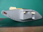 Based on the few scant photos available - the best being the face on shot of trackless Mk.I tanks under repair - I am trying to get my head around the arrangement / fixing of spare track plates on the front of tanks *and* identify what the nondescript lumpy things are behind them.