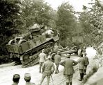 the trails and lifting the trails onto a sprung transport frame which had a pair of wheels and a seat for the brakeman. On the back of the Schneider CD