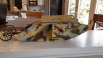 The best preserved area of paint and more importantly clean and free of rust, is at the rear. This shows a pale cream/stone with a light blue/grey below and a red/brown and green to the side.