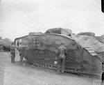 Gwyn has identified this tank as a trainer from Bovington ( No 603.) Presumably rushed out to France as a reinforcement. Somewhere I have seen a photo of this tank in its training guise, does anybody know of this picture and most of all does it show the number?