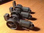 And now complete with breech. This was a bitch to draw in 3D due to the complex shapes. I also made the mistake of making the attachment parts for the recuperators too thin, so these didn't print too well and I had to redraw and print them again.