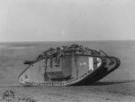American Photographers going into battle lines on a British Army Tank. Sgt Morris and Pvt Persse, somewhere between Villeret and Bellicourt. France. Photographer: Pvt E. J. Peter. Location: France. Date September 29, 1918. NARA Ref#: 111-SC-24534