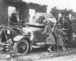 Here's a shot of the complete car with the square cupola. Supposedly at Guillemont on the Somme in Sept 16, according to Mr Fletcher on the Bovington website. But if that's a small white-red-white flash above the rear wheels then a later date is perhaps suggested. Someone might be able to link a unit to the vehicle serial, which might help. Somehow I don't imagine it's the Padre's transport (standing behind)!
