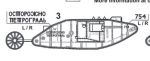 I have never seen a photo of tank 754, however there is a drawing of the tank in Richard Pullen's "Landships of Lincoln". The tank was part of the Fosters' production run (739 - 775). As such, it would have lacked the spaced armour bolts on the roof, which were seen on some of the Metropolitan tanks. The serial number and "Petrograd" inscription were located on the front horns of the Fosters tanks, as seen in the photo above.