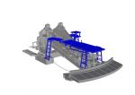 A wire runs from the winch below the crew platform to the bottom of the crane through the crane and then is connected to the munition tray.