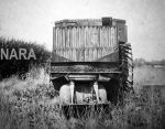 "The machine shown here has presented an enigma to everyone who has tried to reasearch it. It was wheeled, but was omitted from the previously published U.S. Military Wheeled Vehicles due to the fact that it was a tank (Was it? - Ed). Although it was built by the Holt Tractor Company in 1918, the extensive archives held today by Caterpillar do not include any other views, although these records do refer to it as the "150 Ton Field Monitor." It has been generally assumed that a rear view is seen here, and that the large steel driving wheels were at the front. However, Mr. Louis Neumiller, a former Chairman of the Board at Caterpillar, remembers the vehicle undergoing tests and says the small wheels were at the front, farm tractor style. Regardless of which way was forward, it only moved about 50 feet in testing before it got bogged down. Each of the 8 foot tall driving wheels ws individually powered by a 2 cylinder double acting Doble steam engine. Each engine had a Doble-type boiler, and a large Holt radiator was behind the vertical louvers, acting as a condensor for the system."