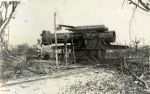 This Howitzer is of 38 cm caliber and was manufactured in Pilsen, Austria in 1917. It was captured September 26 by the 319th Infantry 80th Division. In destroying the gun before leaving the recoil was unfastened and a charge exploded which threw the base cap weighing 2 tons over 300 yards and the breach block through a 2 foot stone wall. The gun is to go to West Point, U.S.A. The gun had a compass bearing (magnetic) S 31° E and was used to fire on Verdun.