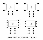 So the note of it use only at the rear is partly wrong. The rivet pattern was also on the front but perhaps it is not a Machine Gun Aperture in that case. The list also missed that the A type was used together with the C.