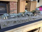 Some photos of a diorama I built.It’s supposed to be a 9.2” howitzer being taken to the front, hauled by a Holt tractor, somewhere in France on a very soggy day. Scale is 1/35, Roden Holt, howitzer a very well travelled Resicast model....made in Belgium, purchased in Australia, built in the Uk. The dio is very difficult to photograph as it’s nearly a metre long.
