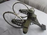 The designer of the Wektor Lebedenko model designed a jig to build the wheels on - this proved to be essential. The spokes on my model are annealed 1mm Copperwire - they were painted black - the reason they are still Copper coloured in the image is the old "quick - get some images - I've finally finished it". I've still got the jig around (somewhere) and will get an image of it.