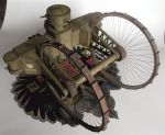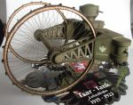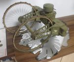 The designer of the Wektor Lebedenko model designed a jig to build the wheels on - this proved to be essential. The spokes on my model are annealed 1mm Copperwire - they were painted black - the reason they are still Copper coloured in the image is the old "quick - get some images - I've finally finished it". I've still got the jig around (somewhere) and will get an image of it.