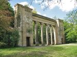 Manchester Town Hall used to be on King Street in the city centre. The Council moved into a bigger, better building, facing on to Albert Square (there's a clue in the name) and the old one became a library until it was demolished in 1912. However, the facade, with its impressive colonnade, was rescued and re-erected in Heaton Park, about 6 miles north of the city centre. It's still there. This is what it looked like, and still does: