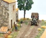 The farm house is a Reality in Scale casting and was really nicely detailed, the goat and rabbit are 3D printed from Serious Play, the barrow is a Firma 49 3D print, the driver's from GB Modelli, the farmer is a modified Pegasus partisan figure and the other bits and pieces are my own castings.