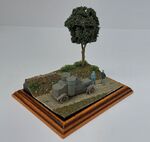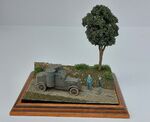 The landscaping is formed from PU insulation foam skimmed with plaster, the small section of wall was cut down from a Preiser set, the lefthand figure is a modified Orion German tank crewman and the righthand one is from Black Army Modells, without a doubt he's one of the best 1/72 sculpts I've seen.