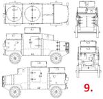 I still have no information if the versions from 1916 and from 1915 were the same vehicle just rebuilt or there were two different ones. If we knew that the later version was the same vehicle with changed nose part – we could say that the exist replica and the paper model have incorrect geometry. Anyway, they have at least one mistake: the hull (looking from the top) has narrowing from the central compartment both to the front and to the rear ends. But looking to the prototype (both version – from 1915 and from 1916) – the almost whole hull must be straight.