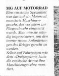 A russian speciallity was a machine gun mounted on a motorcycle,which was taken first for defence against aircraft. There had been steadily improvements in fact of the ever new requestions of war. Even at such vehicles as the sidecar ,the russians mounted a machine gun.